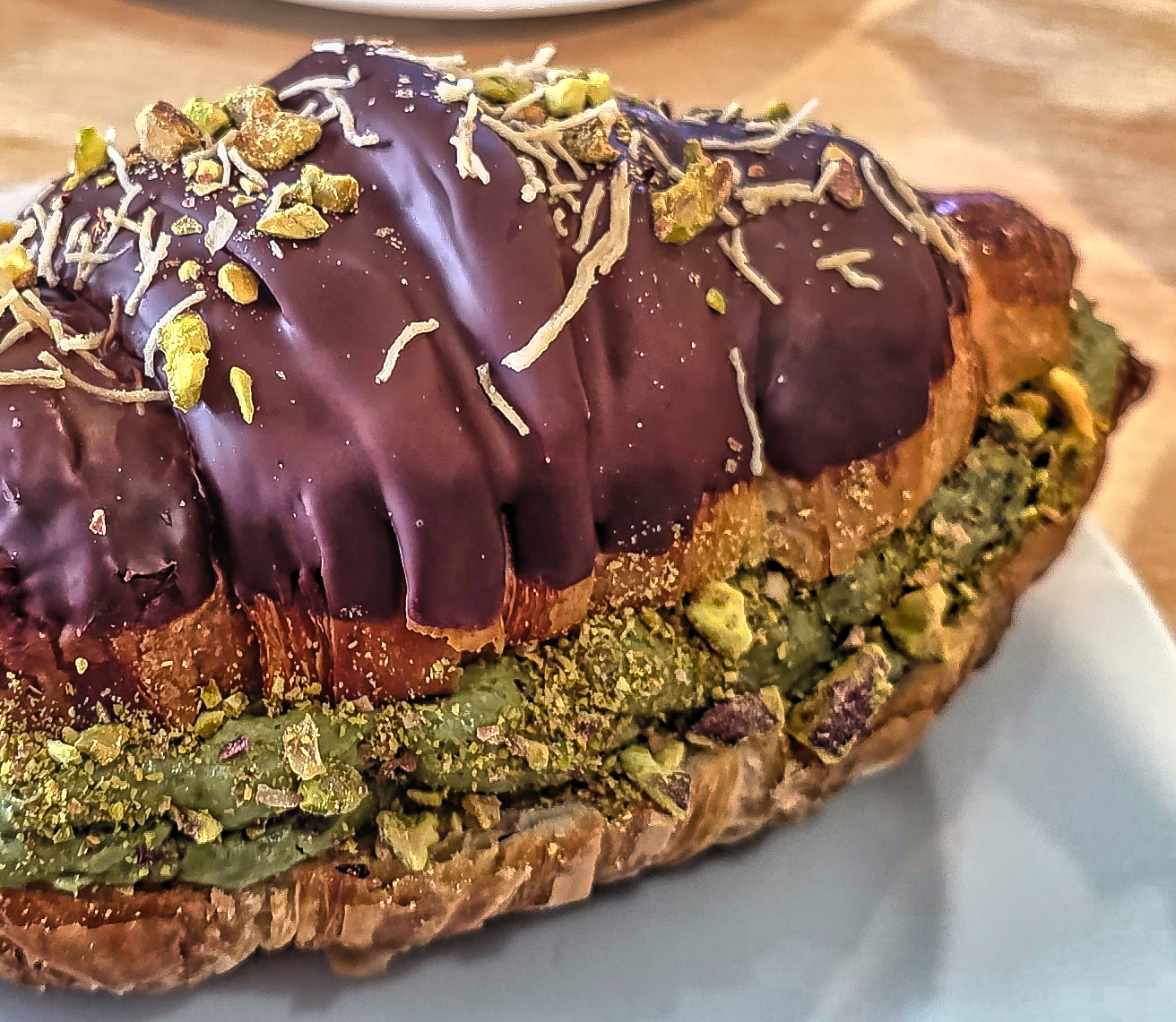 A luxurious croissant inspired by Dubai’s bold flavors—flaky, buttery layers filled with rich pistachio cream.